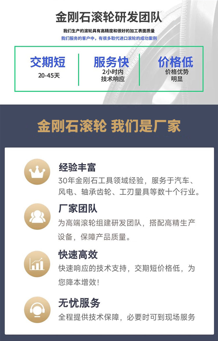 金剛石滾輪適用于各類砂輪修整,具有高精度的特性。