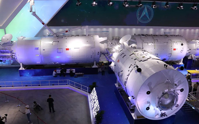 第十四屆中國航展將迎來首個公眾日,航天科技集團五院精心打造的中國空間站組合體1:1展示艙在航展7號館和大家見面。參展人員可以實地走進艙體內部,打卡中國空間站,感受中國“太空之家”的恢弘大氣。